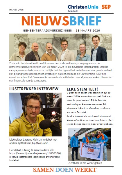 donderdag 12 maart 2026 08:40 Lees hier onze campagneflits, de nieuwsbrief over de campagne van ChristenUnie-SGP.